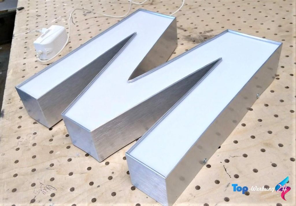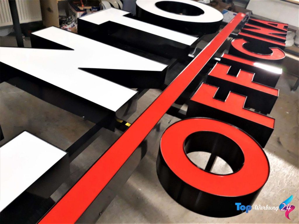 Wir produzieren Buchstaben und Logos aus verschiedenen Materialien, Grӧβen und Stärken. Diese machen wir mit oder ohne LED’s, freistehend oder Montagefertig mit Leisten oder direkt an die Fassade zum Anbringen, für innen oder auβen, in verschiedenen Farben.